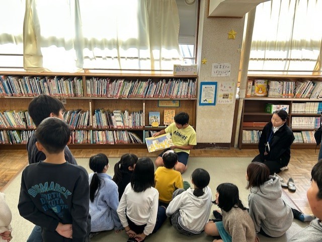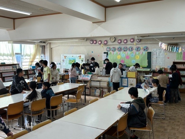 先週の一週間は、読書週間でした。昼休みには、図書委員会による読みきかせも行いました。図書委員会の活動のおかげで、延べ400人を超える児童が図書室に来たそうです。とっても盛況で図書委員会の本の貸し出し作業も忙しく活動していました。