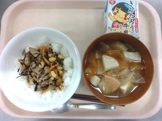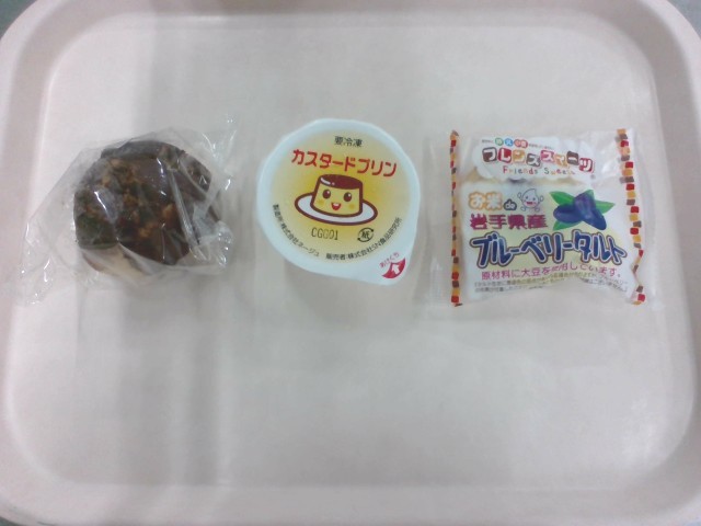給食週間二日目の今日はデザートセレクトです。事前にミニエクレア・プリン・ブルーベリータルトから一つを選んでいます。教室では「私はこれ選んだ」「そっちも美味しそう」楽しそうな声がたくさん聞こえました。