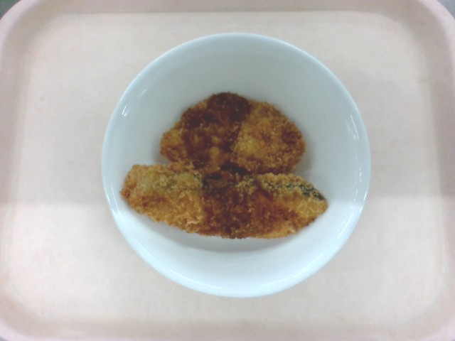 給食週間三日目は、朝の時間は給食委員会による集会がありました。給食はフライセレクトで鮭か鶏をどちらかを事前に選んでいます。圧倒的に鶏が人気でした。