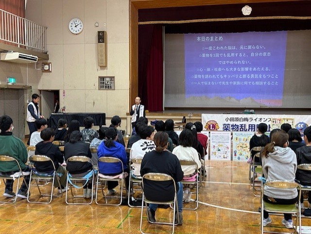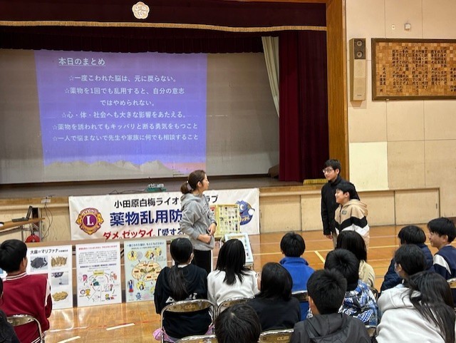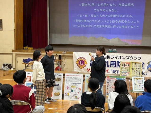 1216日(火)に6年生が白梅ライオンズクラブのみな様を講師にお迎えし、薬物乱用防止教室」を実施しました。薬物の種類や体への影響についての説明、DVD視聴、日本や世界における薬物の現状についてのお話ししていただきました。子どもたちは、薬物が決して遠い世界の話ではなく、身近なところにも危険が潜んでいることを知り、真剣な表情で話を聞いていました。