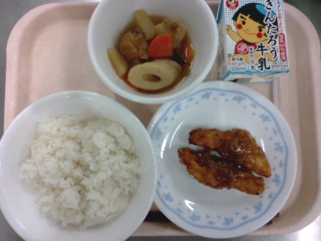 さばふぐ、たこ天、ちくわ、大根、これらが小田原産の食材です。里芋は学校農園のものを使用しています。おでんは好みが分かれていましたが、全体的にはよく食べていました。
