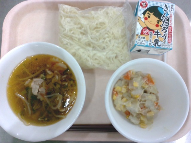 さとぽてサラダは初登場です。じゃがいもを使ったポテトサラダの里芋バージョンです。マヨネーズは使いますが、しょうゆや鰹節を加えて、少し和風の要素も加わっています。里芋のねっとりした感じが、けんちん汁やおでんより感じられました。もちろん里芋は学校農園で収穫したものを使用しました。