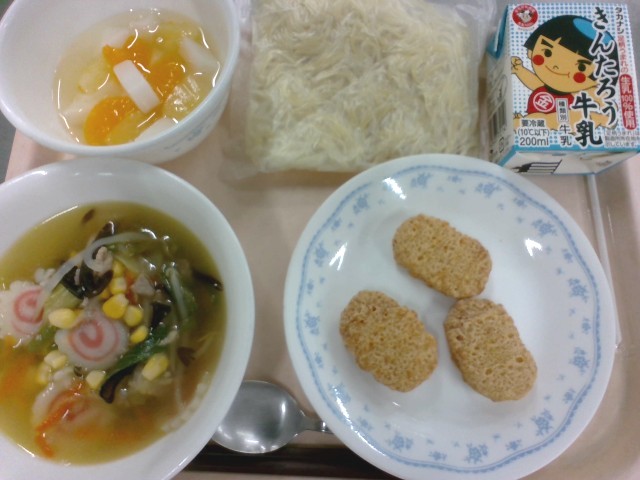フルーツ杏仁豆腐は初登場です。杏仁豆腐自体を食べたことない子が多く、「どんな味?」「豆腐なの?」食べる前からいろいろ声がありました。苦手な子もいましたが、全校としてはよく食べていました。