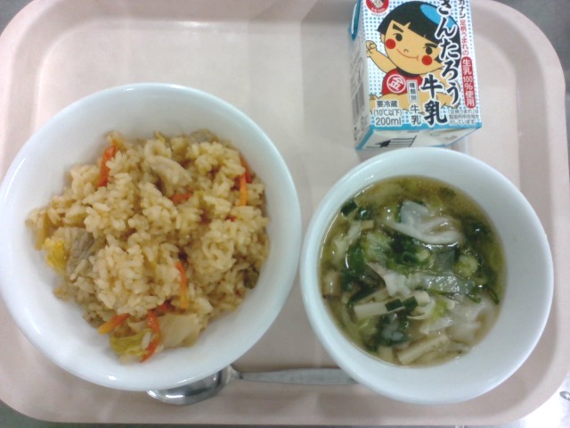 キムタクごはんは6年生のアルファ化米部門のリクエストです。全体は味が薄めですが、たくあんやキムチに当たると味が濃くなるので食べ飽きることなく最後まで美味しく食べることができます。リクエストだけあり、6年生はペロリと完食です。