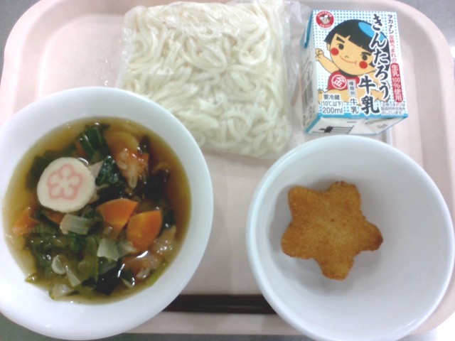 わかめうどんは6年生のうどん部門のリクエストです。カレーうどんや肉うどんが1位になるかと思いきや、わかめうどんが1位という意外な結果となりました。