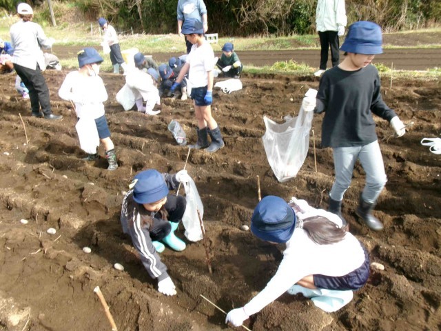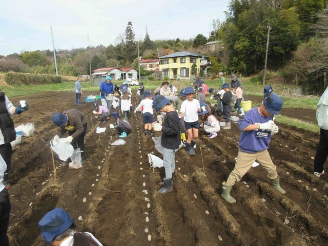 2月27日(金)に2年生がジャガイモの種イモを植えました。朝早くから農園ボランティアの方が来校して、ジャガイモを半分に切り、灰を付けるなどの準備をしてくださりました。子どもたちは、ジャガイモとジャガイモの間隔や肥料のあげ方を教えてもらい植えました。多くの保護者の方がボランティアとして参加してくださったおかけでスムーズに作業を終えることができました。参加してくださった農園ボランティアの皆さん、保護者の皆さんありがとうございました。