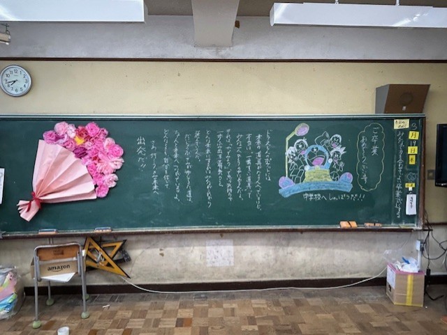 卒業式前日の放課後、担任がこの1年間の思いと、次へのステップに向けて応援するメッセージを書いていました。子どもたちを大切に思っていた担任の思いが伝わる温かいメッセージでした。