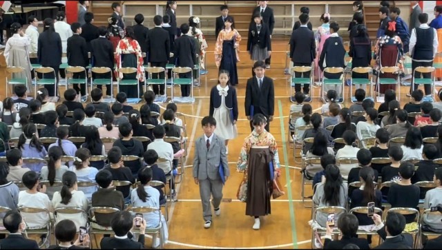 19日(金)は6年生41名全員が出席し卒業することができました。式では、卒業生・在校生ともに堂々とした呼びかけ、きれいな歌声が体育館に響きわたりました。
