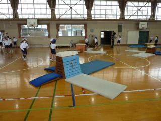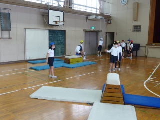 1月24日(月)、3年生が体育館で跳び箱運動をしていました。体育館には、それぞれの技や跳び箱の段数に応じていろいろな場が用意されていました。周りの安全に気を付けながら跳ぶなどルールも守られているようです。高く跳んだりいろいろな跳び方を学んだりすることができ、3年生は意欲的に活動していました。