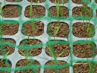 5年生は、休み中も稲の水やり当番を決めて、世話をしていました。休み明けの稲はどうかな?と見に行くと、細くてきれいな緑色の稲が見られました。4月26日に籾まきをしてから2週間近く経ちましたが、しっかり生長しています。5年生のお世話のおかげです。生長していく稲の姿が楽しみです。5年生ありがとうございます。