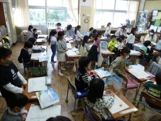10月24日(月)、1年生は国語の物語文「くじらぐも」の学習をしていました。くじらぐもにのった1年生のお友達の言ったことは?想像しワークシートに書きました。次は発表です。たくさんの子が積極的に発表しており、すばらしと思いました。