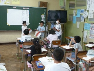 9月22日(金)、4年生は、国語の物語文「一つの花」の学習でした。これから戦争に行く父親の子を想う気持ちを役割演技をしながら想像していました。そして、友達の考えを聞いて共感的に反応したり、登場人物の気持ちを考えしっかりと発表したりしていました。関わり合い学び合う姿は、うれしく思いました。