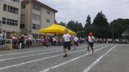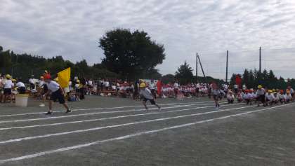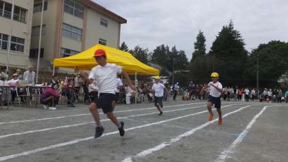 4年生は80m走です。力強く腕をふり、足をしっかり上げてゴールめざして走りました。