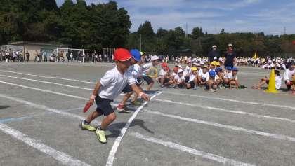 下学年と上学年に分かれて代表選手によるリレーを行いました。順位も変わり、見ている人の目を引き付ける展開でした。