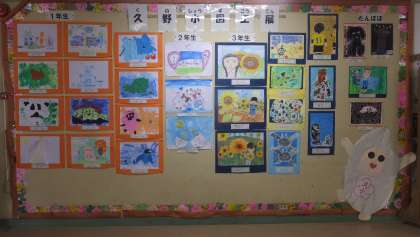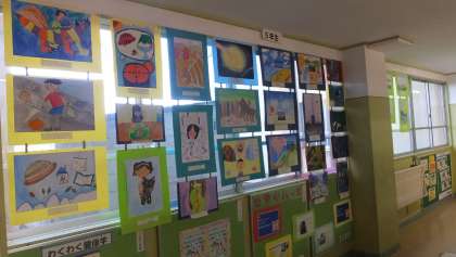 1月24日(水)から29日まで久野小学校図工展の公開をしています。昇降口前のギャラリーから保健室前の廊下に、小田原市小学校巡回図工展WEB鑑賞会の代表作品と各学年の代表作品が展示されています。どの作品も力作で、大変見応えがあります。