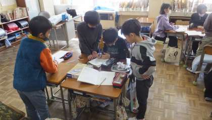 3月4日(月)、3年生は楽しそうにグループ活動をしていました。粘土やアルミホイルの重さを測り、形を変えると重さはどうなるか?予想を立てた後、実験して調べていました。興味をもって元の形を変えたり、細かくちぎったりして実験していました。