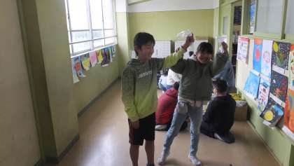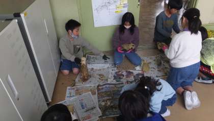 3月5日(火)、4年生が廊下で作業していたので見学するとヘチマの皮を剥いたり種を取り出したりしていました。気が付かなかったのですが大きなヘチマが育っていました。そして、黒く大きな種を見せてくれました。また4年生は、ツル用のネットもきれいに掃除していました。来年の4年生のためにがんばっていました。