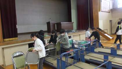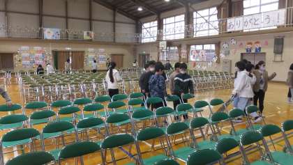 3月5日(火)、5年生は卒業式の椅子並べをしました。今年度の卒業式は、保護者、学校運営協議会委員、市教育委員会1名、教職員、3年生から5年生の在校生と昨年に比べ多くの人で卒業生をお祝いします。席数が増えましたが、5年生がきれいに並べてくれました。5年生、ありがとうございました。
