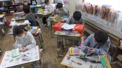 3月6日(水)、3年生は集中して作業していました。電気や磁石のはたらきを使ったおもちゃづくりです。実際に自分であそびながら改良点を見つけ、さらによりよくしている子もいました。みんな真剣です。完成したおもちゃをみんなで楽しめるといいですね。