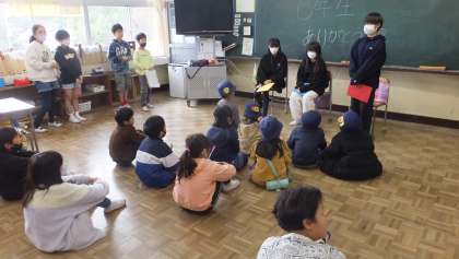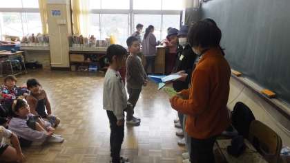 今日は、1年生が6年生を迎えに行くことからスタートです。そして、これまでの感謝の気持ちを込めた寄せ書きを6年生へプレゼントしました。6年生は、笑顔もあり、嬉しそうでした。そして、6年生一人ひとりから感謝の気持ちと来年度への励ましの言葉がありました。別れの寂しさもありますが互いに感謝の気持ちを伝え合い、いつものように久野っ子班での遊びの時間になりました。みんな仲良しです。異学年集団である久野っ子班の縦のつながりは、今後も大切にしていきたいと考えています。