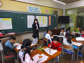 「あったらいいな、こんなもの」という題材で、話すこと・聞くことがテーマです。ドラえもんの4次元ポケットなども用意され、子どもたちは自分の考えた作品を話したくて仕方がない様子でした。聞く方も真剣でした。