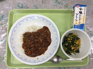 ハヤシライス あおなとコーンのソテー のむヨーグルト