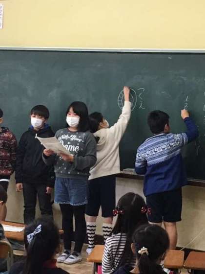 先週の水曜日、5年生が中心となり、この明日行われる久野っ子班お別れ給食について話し合いました。