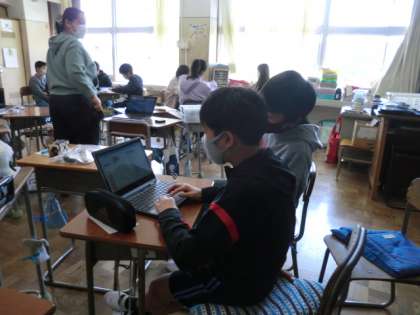 6年生がプログラミングの授業をしました。理科の「私たちの生活と電気」の学習です。クロームブックにプログラミングをすることで、電気を光らせる体験をしました。