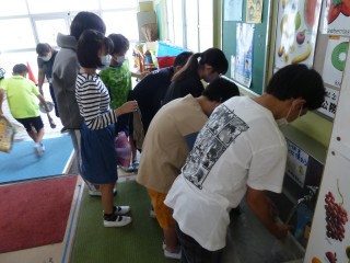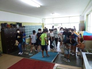 避難訓練が終了して校舎に入る前には、