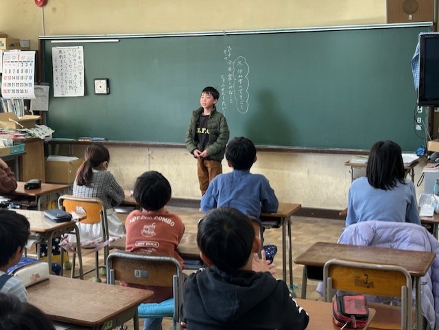 その後、各教室を参観すると、冬休みの思い出や、この1年で頑張りたいことを発表しているクラスが多くありました。友だちの前で話をすることは緊張しますが、話し終えた後に友だちからもらう拍手でホッとしているようでした。