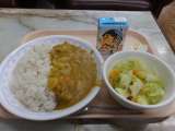 大根のカレー(4年生が作った大根です) 茹で野菜 ドレッシング 牛乳