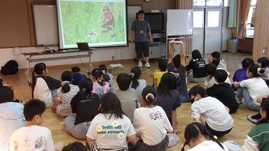 5年生は林業について学びます。今日は座学の日で、小田原の林業について講師のお話を聞きました。次回の林業の学習は実際に小田原の林に行って体験してきます。