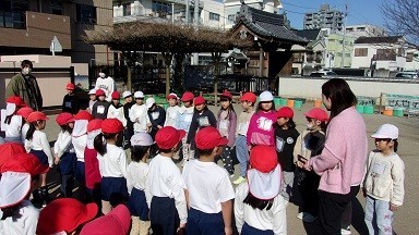 1年生が地域の保育園と交流して遊びました。外で一緒に鬼ごっこをしたり、室内で折り紙を教えたり、楽しく過ごしました。帰ってきた1年生は少しお兄さんお姉さんになっていましたよ。