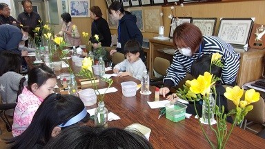 今年度最後の生け花体験が行われました。毎月1回程度、昼休みに学年ごとの希望者にボランティアの皆さんのご指導の下、生け花体験をしてきました。この時間は清々しい気持ちになれるひと時です。