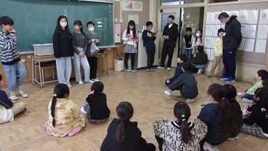今年度最後のなかよし班遊びは、給食も一緒に食べることになりました。4,5年生が中心になって配膳などを行い、楽しく給食を食べました。その後は、班で遊び、最後に6年生に寄せ書きを渡しました。