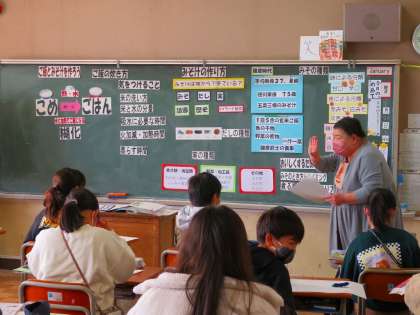 5年生の家庭科の授業です。栄養教諭の先生が授業を行い、アドバイスを受けています。今後、行えることを願いながら、今日は、グループごとに集まって、みそ汁の具材やだしをどうするか話し合いました(写真は、一昨日ものです)。できるといいですね。