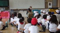 4年生の社会科の授業です。市の環境政策課の方に来ていただき、小田原市のごみの量や焼却するための費用、分別することの意味、ごみを減らすことの大切さなどについて学びました。