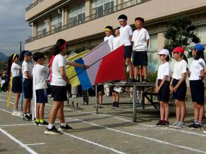 絶好のスポーツ大会日和の中、観客の人数制限をなくしたスポーツ大会を4年ぶりに行いました。午前中だけとはいえ、今まで子どもたちが種目から考え、練習してきた成果を思う存分に発揮しました。応援もどの色も素晴らしく、仲間にたくさんのエールを送ることができました。ぺんた君も応援に駆け付けてくれました。
