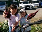 今日は、1年生が芋ほりをしました。春に校庭の畑に植えたサツマイモの苗から、大きな芋がたくさんできました。校庭に1年生の歓喜の声が響いていました。