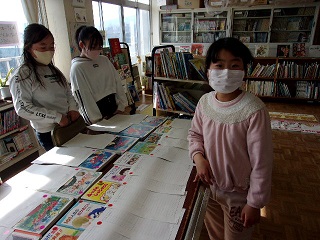 図書室でいらなくなった本を、欲しい子たちにもらってもらうために、今週は図書委員会が古本市を開きます。捨てるにはもったいない本が、図書室の机に所狭しと並びました。人気のある本には何人も希望者がいますが、来週くじ引きでもらえる人が決まります。