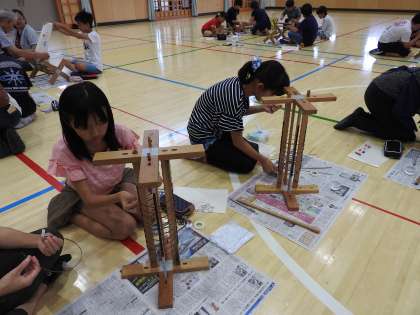 観光協会青年部ちょうちんボランティアの皆様に、いらしていただき、ちょうちんの作り方を教えてもらいました。
