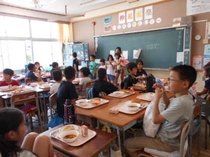 6年生がリーダーシップをとって、なかよし班毎に準備・配膳をし、いただきました。