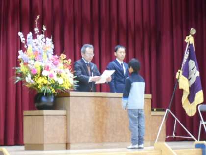 学年の代表の児童が、修了証を受け取りました。