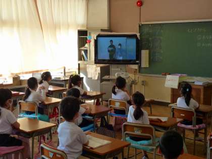 児童集会で、「1年生を迎える会」を行いました。今年度は、スタジオからの生放送と事前に撮影したビデオを組み合わせました。各学年からのメッセージやプレゼントがあり、1年生からもビデオメッセージがありました。直接、会うことはできませんでしたが、気持ちは互いの心に届いたことでしょう。