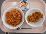 スパゲティナポリタン とりにくのコーンクラッカーあげ 牛乳・・・今日は、子ども...