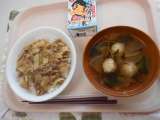 ぶたどん つみれじる 牛乳・・・今日は「うんどうかいおうえんこんだて」2日目で...