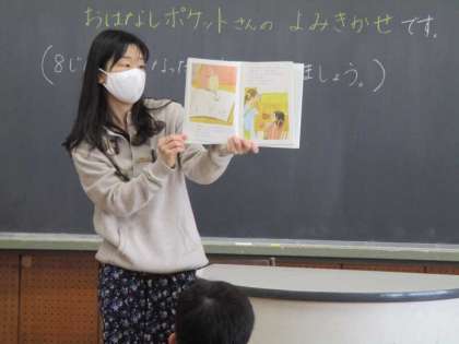 今年度は、コロナ対策のため読み聞かせの機会がなかなかとれず、久しぶりの読み聞かせでした。この読み聞かせを待っていたよというように、子どもたちは集中して聞き入っていました。