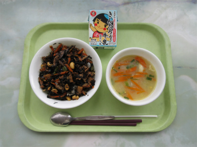 6月7日(火)の給食 公開日 2022/06/08 更新日 2022/06/08 今日の給食 ◆◆◆◆ 6月7日の献立 ◆◆◆◆ ぎゅうにゅう だいずいりひじきごはん ちゅうかふうコーンスープ <かみかみこんだて> ***************** 「だいずいりひじきごはん」が「かみかみこんだて」でした。ごはんと混ぜながら大豆をしっかりかんでいただきました。「ちゅうかふうコーンスープ」は野菜の甘みとかき玉の優しい味がマッチしたおいしいスープでした。 いいね(0)
