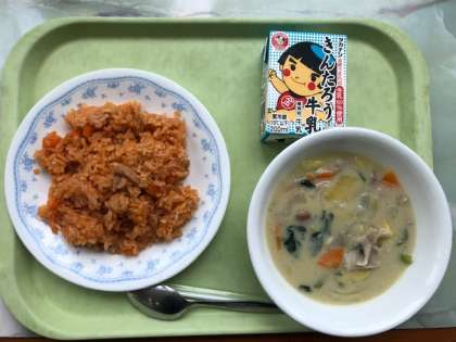5/20(月)の給食 公開日 2024/05/21 更新日 2024/05/21 今日の給食 ◆◆◆◆ 献 立 ◆◆◆◆ 牛乳 チキンライス 豆乳のクリームスープ ************* いいね(0)