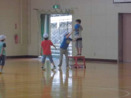 梅雨の影響でプールになかなか入れません。そういうときは、体育でポートボールを学習しています。ミニバスを習っている子どもたちも多いので、その子たちをリーダーに練習やゲームをしています。パスやドリブルもうまくなってきました。ランパスでは、1分間で70回の記録を打ち立てたチームもあり、切磋琢磨してがんばっています。体育館の割り当ての休み時間にもやっています。